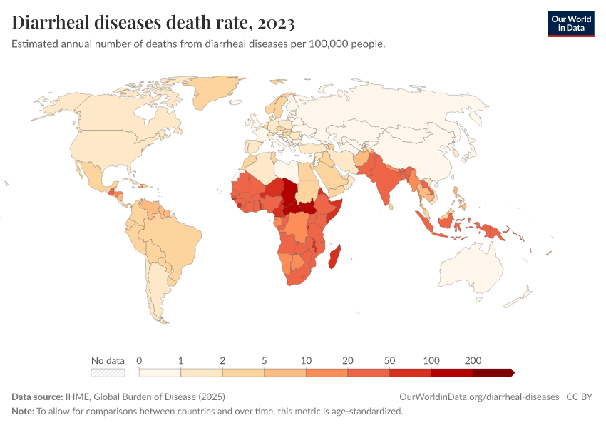 Saloni Dattani, Fiona Spooner, Hannah Ritchie, and Max Roser (2023) - “Diarrheal Diseases” Published online at OurWorldinData.org. Retrieved from: 'https://update-wdi-2026-02-27.owid.pages.dev/diarrheal-diseases' [Online Resource]BibTeX citation