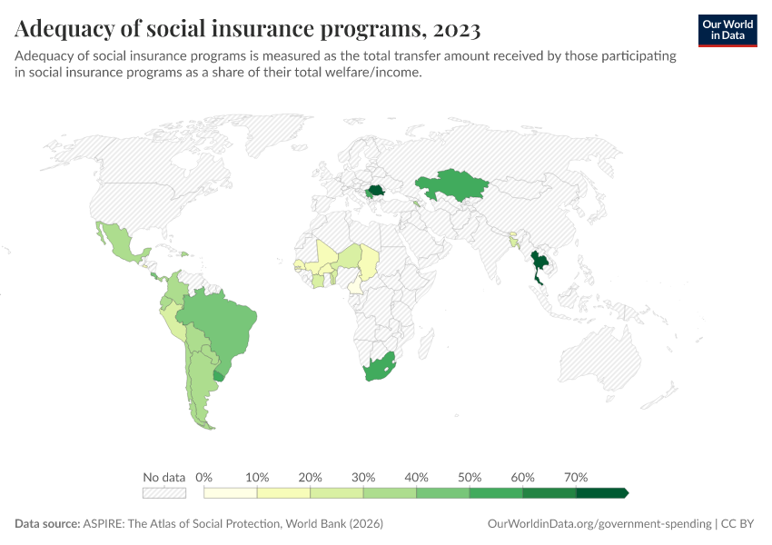 “Data Page: Adequacy of social insurance programs”. Our World in Data (2026). Data adapted from ASPIRE: The Atlas of Social Protection, World Bank. Retrieved from https://update-wdi-2026-02-27.owid.pages.dev:8789/20260202-181317/grapher/adequacy-of-social-insurance-programs.html [online resource] (archived on February 2, 2026).How to cite this data