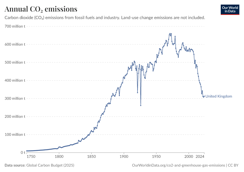 Global Carbon Budget (2025) – with major processing by Our World in Data. “Annual CO₂ emissions” [dataset]. Global Carbon Project, “Global Carbon Budget v15” [original data]. Retrieved March 1, 2026 from https://update-wdi-2026-02-27.owid.pages.dev:8789/20260223-071105/grapher/annual-co2-emissions-per-country.html (archived on February 23, 2026).