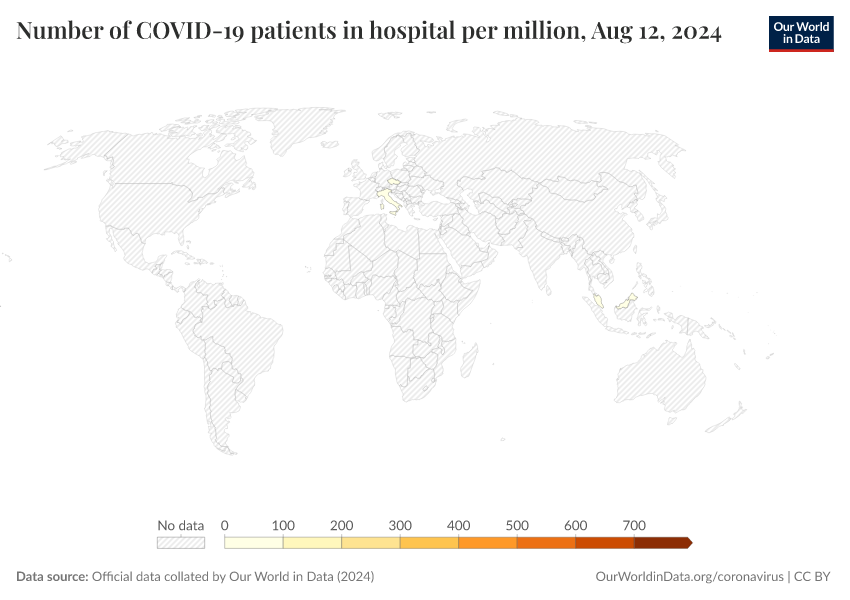 Official data collated by Our World in Data (2024) – processed by Our World in Data. “Number of COVID-19 patients in hospital per million” [dataset]. Official data collated by Our World in Data, “COVID-19, hospitalisations” [original data]. Retrieved March 1, 2026 from https://update-wdi-2026-02-27.owid.pages.dev:8789/20250909-093708/grapher/current-covid-hospitalizations-per-million.html (archived on September 9, 2025).