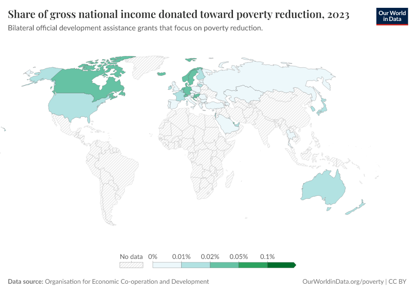 “Data Page: Share of gross national income donated toward poverty reduction”. Our World in Data (2026). Data adapted from Organisation for Economic Co-operation and Development. Retrieved from https://update-wdi-2026-02-27.owid.pages.dev:8789/20260105-133053/grapher/donated-official-development-assistance-grants-for-poverty-reduction.html [online resource] (archived on January 5, 2026).How to cite this data