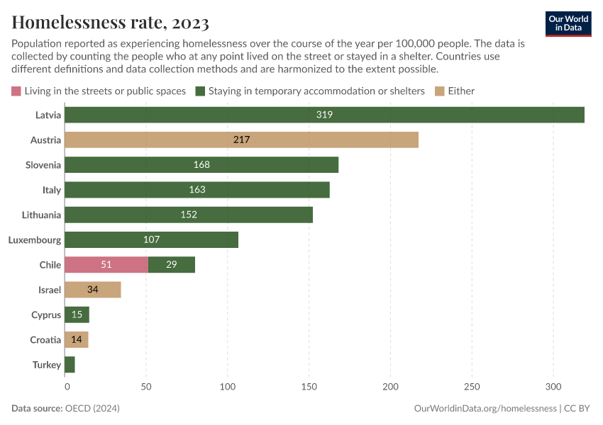 Bastian Herre and Pablo Arriagada (2024) - “Homelessness” Published online at OurWorldinData.org. Retrieved from: 'https://update-wdi-2026-02-27.owid.pages.dev/homelessness' [Online Resource]BibTeX citation