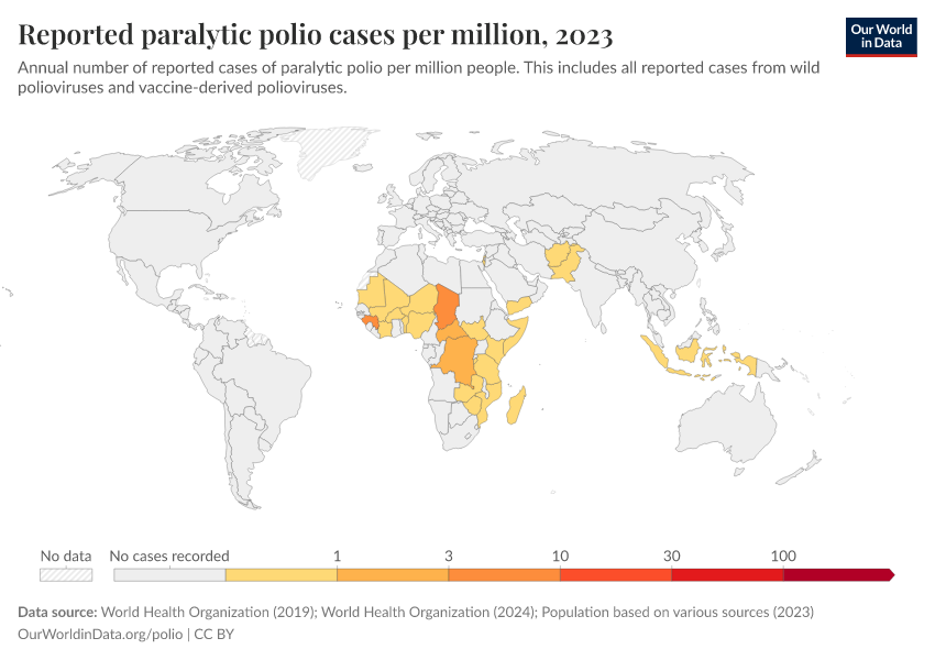 Saloni Dattani, Fiona Spooner, Sophie Ochmann, and Max Roser (2022) - “Polio” Published online at OurWorldinData.org. Retrieved from: 'https://update-wdi-2026-02-27.owid.pages.dev/polio' [Online Resource]BibTeX citation